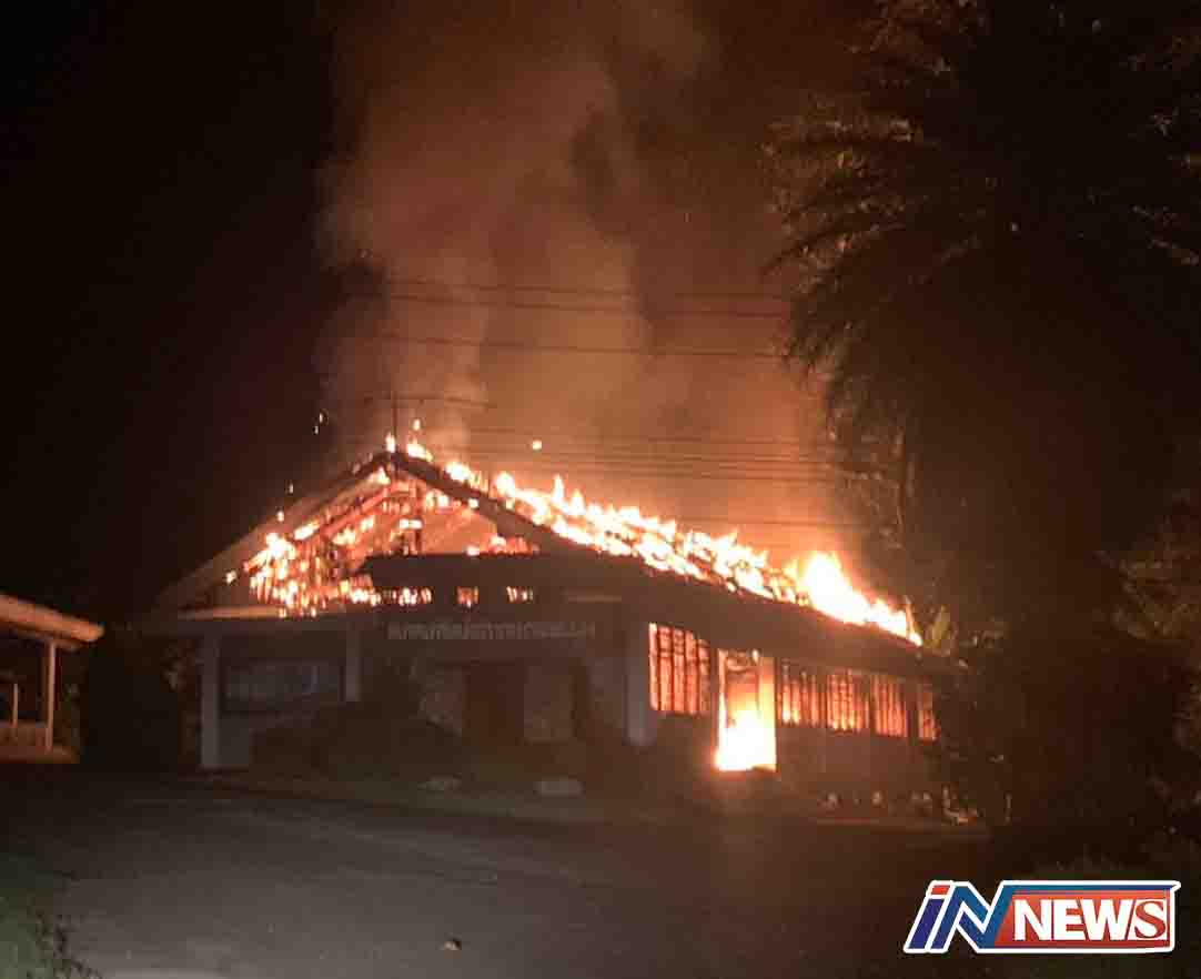 พังงา-เกิดเหตุเพลิงไหม้อาคารในวิทยาลัยเกษตรและเทคโนโลยีวอดทั้งหลัง ตอนย่ำรุ่ง