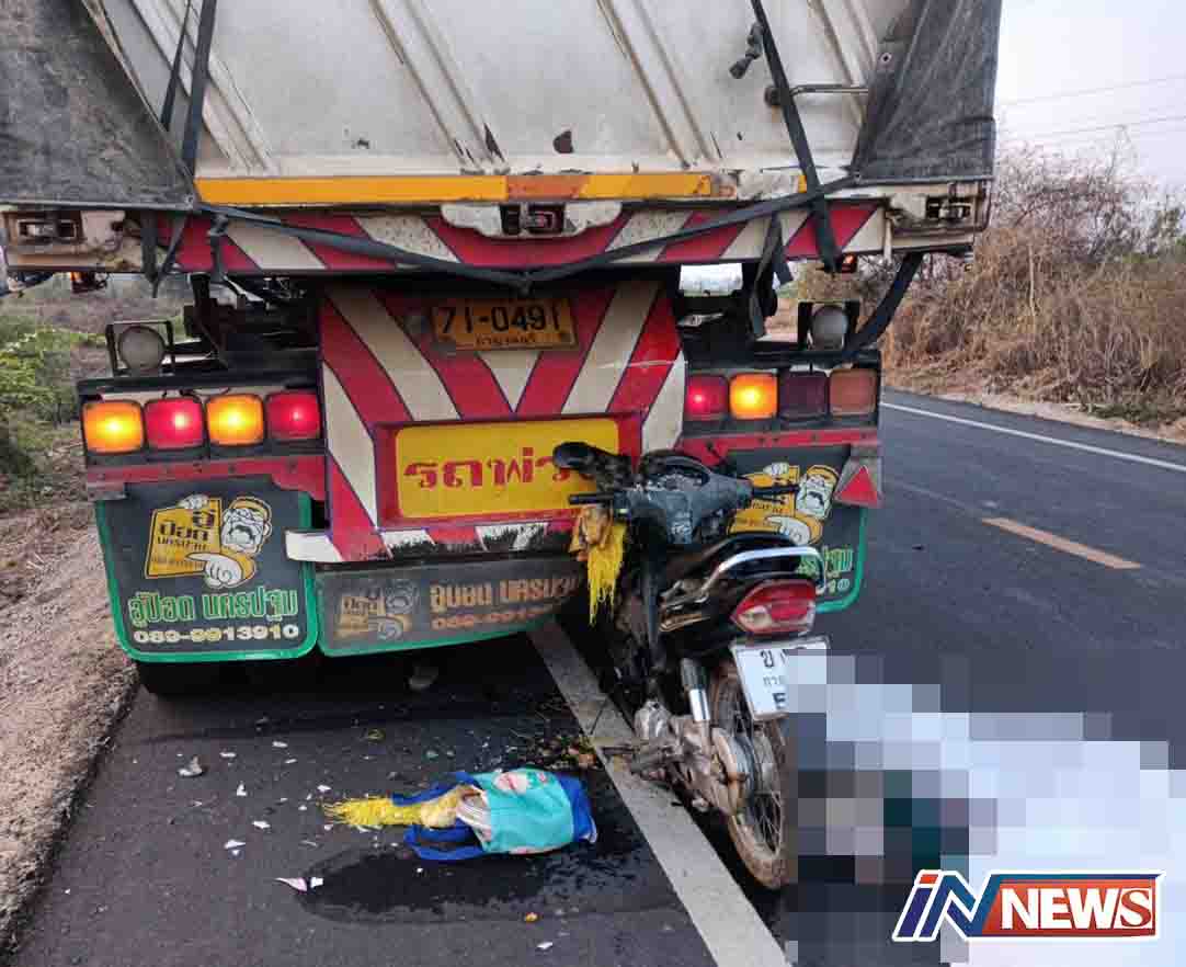สามีภรรยาขี่รถจยย.พุ่งชนท้ายรถพ่วงอย่างจังเสียชีวิตทั้ง2คน