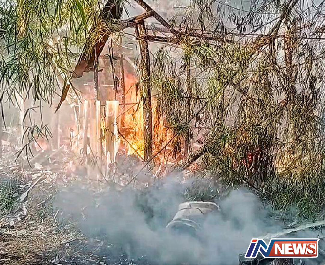 นครนายก-เกิดเหตุไฟฟ้าลัดวงจรลุกไหม้บ้านกะต๊อบติดกับเล้าไก่ชน เจ้าหน้าที่ดับไฟได้ทัน