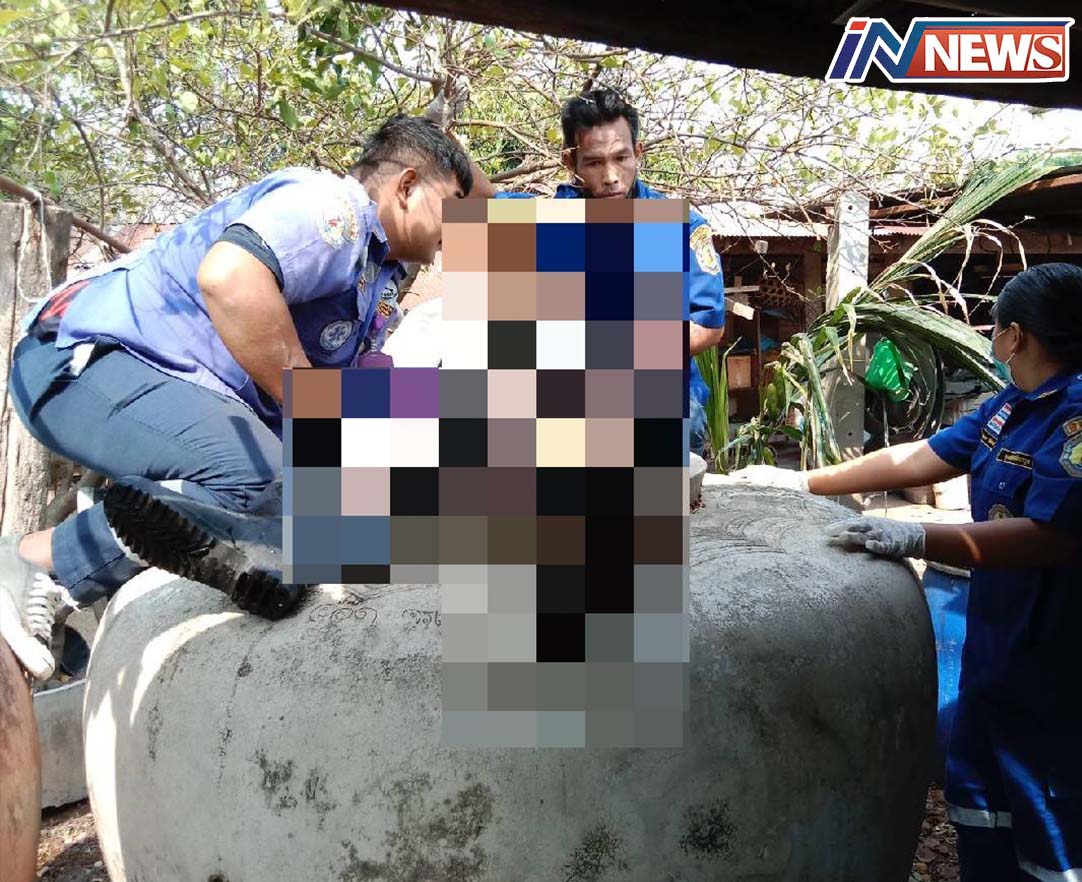 กาญจนบุรี-อนาถสุดๆ หนุ่มวัยดึกบ้านหนองตากยา กาญจนบุรี ปีนโอ่งตักน้ำกิน โชคร้าย พลัดล่วงตกโอ่งน้ำจมน้ำเสียชีวิตคาโอ่งน้ำ