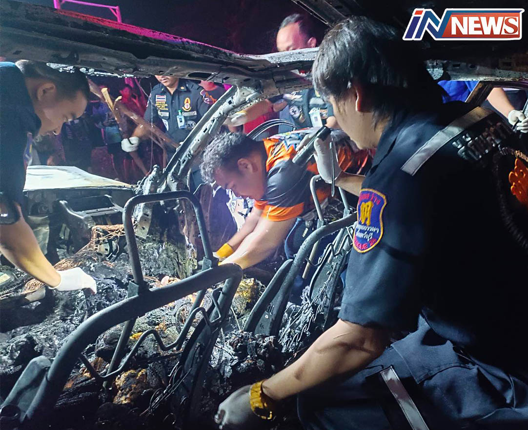 อุบัติเหตุเก๋งไฟลุกไหม้เผาคนขับวอดคาที่นั่งกลางดึก