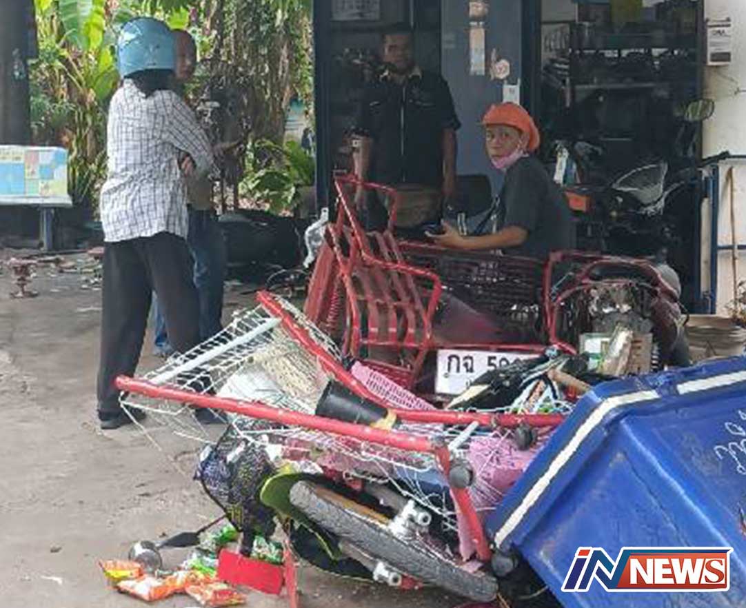 กล้องวงจรปิดจับภาพรถเก๋งชนร้านซ่อมจยย.