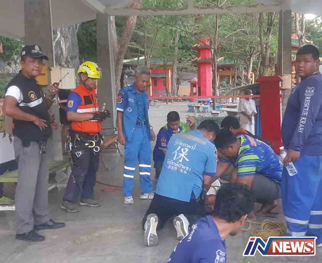 กระบี่-นักท่องเที่ยวชาวออสซี่ วัย 70 ปี เดินขึ้นบันไดวัดถ้ำเสือวิปัสสนา กว่า 1พันขั้น ช็อกล้มลงหมดสติใต้ฐานพระพุทธรูปบนย...