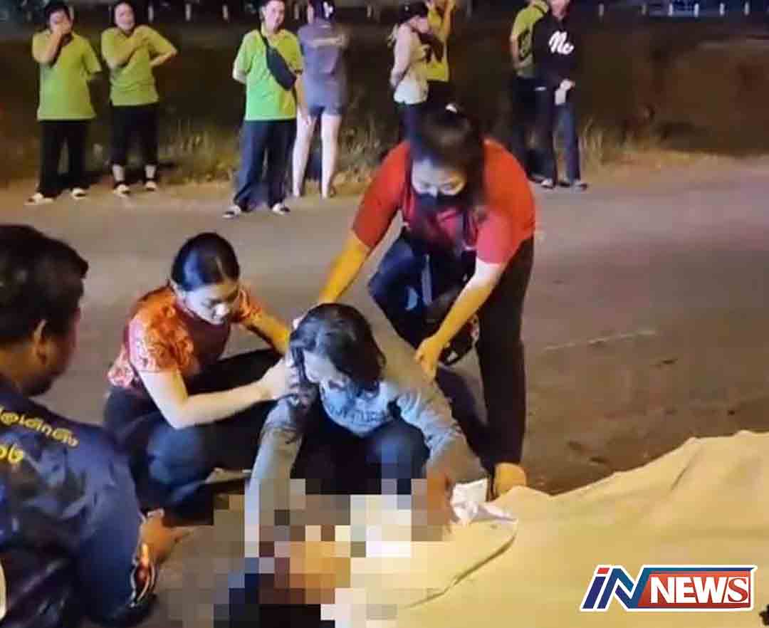 รถกระบะเฉี่ยวชนคนขับรถสามล้อตุ๊กที่ตกลงมาจากรถเหยียบหัวตายคาที่