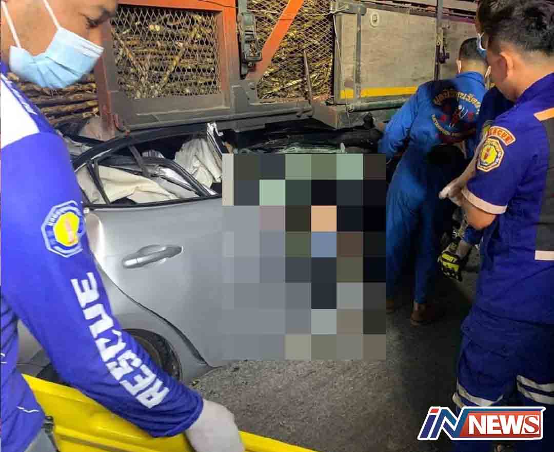 หนุ่มควบเก๋งเสยท้ายรถ10ล้อบรรทุกอ้อยเสียชีวิต