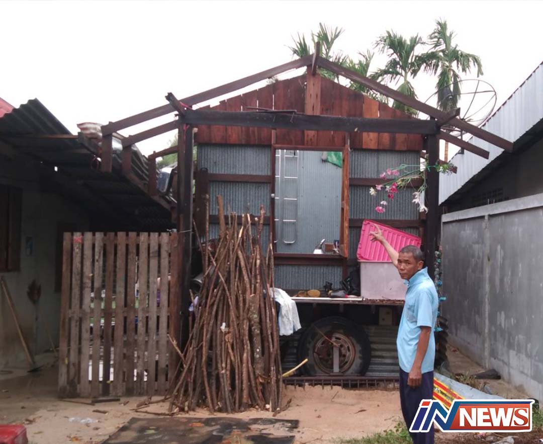 พายุฤดูร้อนพัดบ้านเรือนคอกสัตว์ยุ้งข้าวของประชาชนเสียหาย