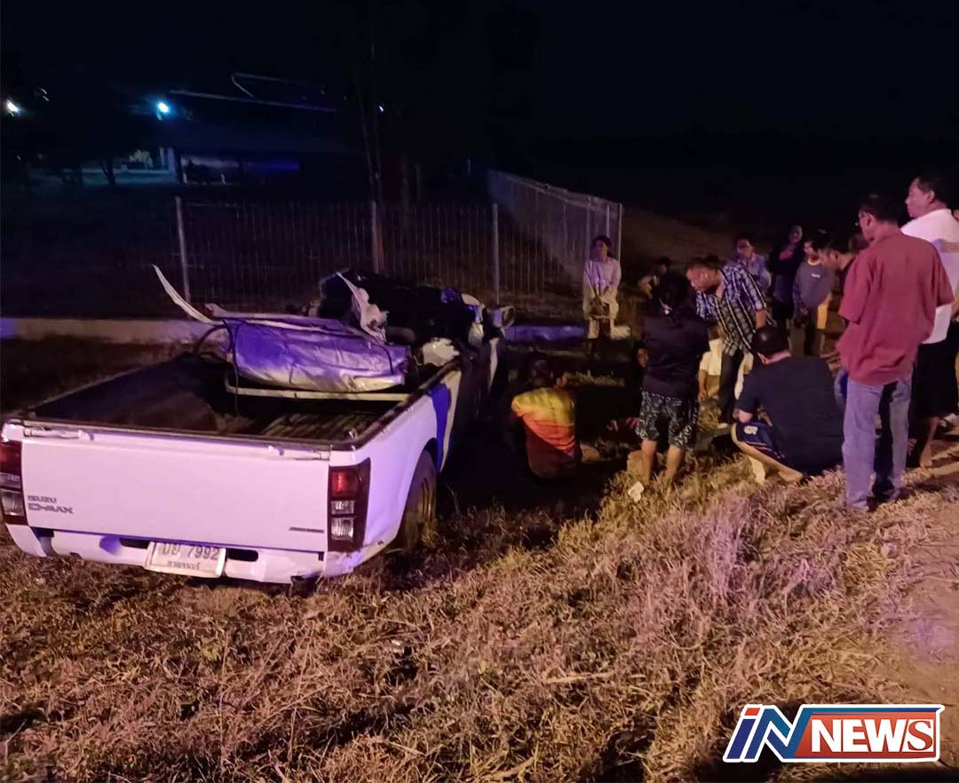 กระบะเสียหลักพุ่งตกถนนชนต้นไม้เสียชีวิตคา