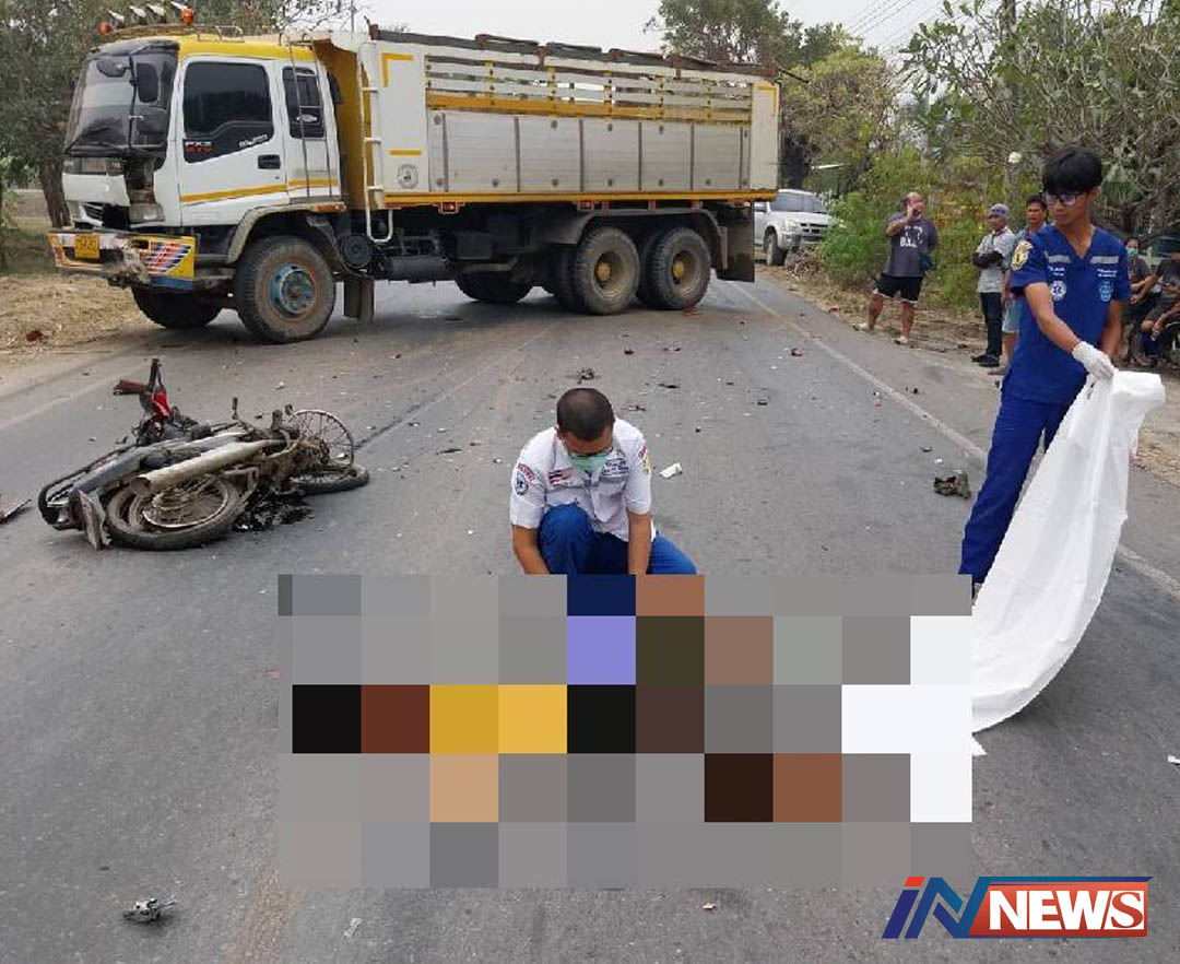หนุ่มน้อยขี่จยย.ชนท้ายรถบรรทุก6ล้อคับคาที่ชาวบ้านโวยไม่เปิดไฟข้างทาง