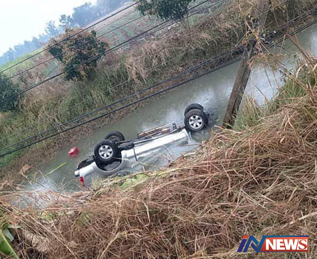 สลด!ฝนตกถนนลื่นรถชนเสาไฟฟ้าเหวี่ยง ตกคลองน้ำดับ3ที่อ.นากลาง-หนองบัวฯ