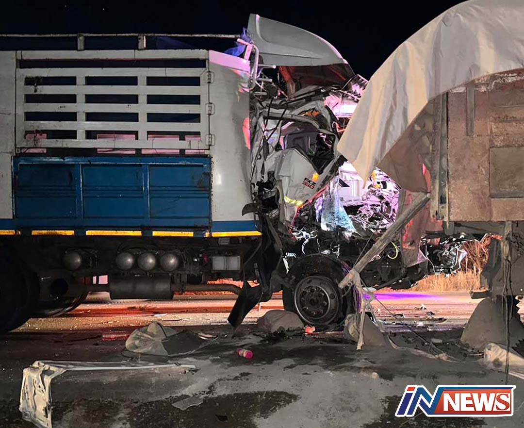 กู้ภัยร่วมใจข้ามโขงช่วยตัดถ่าง18ล้อพ่วงชนท้าย10ล้อคนขับเสียชีวิต