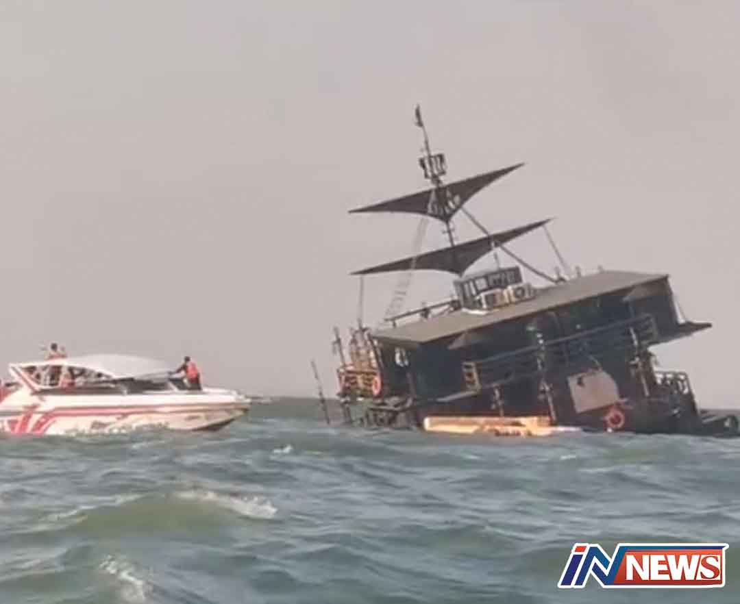 ชลบุรี-คาเฟ่ต์ค็อกเทลกลางทะเลในรูปแบบเรือโจรสลัด 'คราเคเนี่ยน' ล่มกลางอ่าวพัทยา หลังเปิดบริการได้ไม่นาน