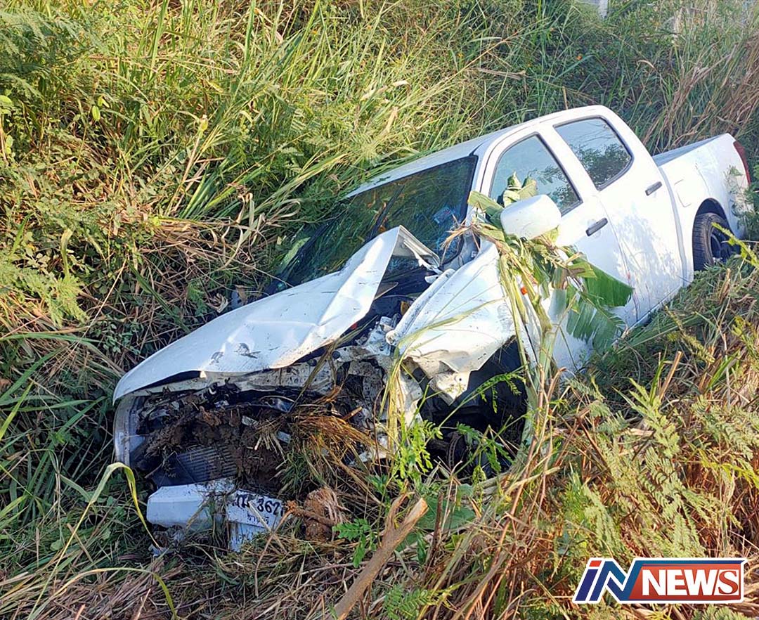 หนุ่มขับกระบะก้มดูโทรศัพท์รถเสียหลักชนจยย.บาดเจ็บ2ราย