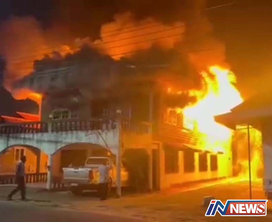 มุกดาหาร-เกิดเหตุเพลิงไหม้บ้านครึ่งปูนครึ่งไม้เสียหายทั้งหลัง ไฟไหม้บริเวณชั้น โดยเจ้าของบ้านนอนอยู่ชั้นล่างไม่มีใ...