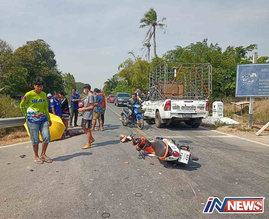 กระบะชนรถจยย.เสียชีวต1บาดเจ็บ1