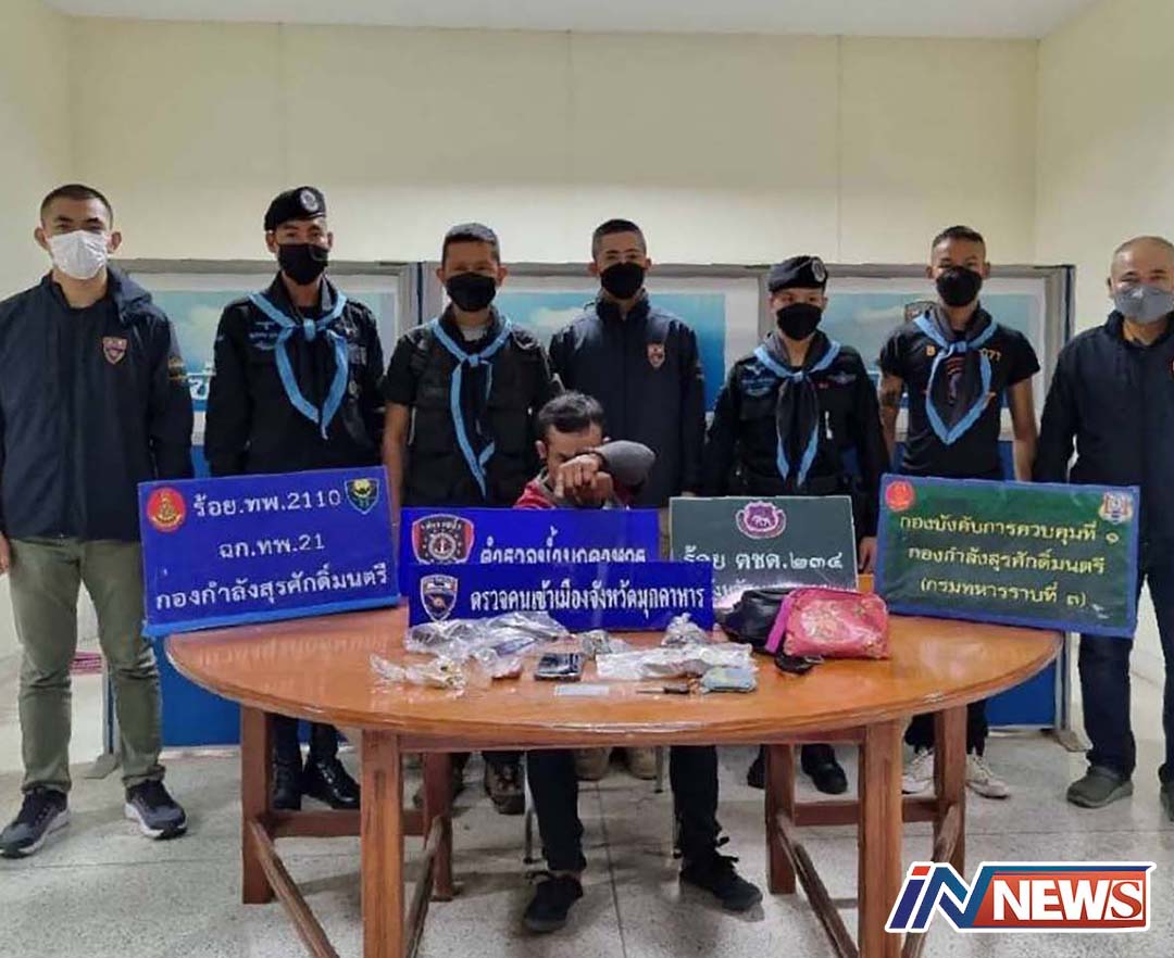 ตม.จว.มุกดาหารจับหนุ่มหลอนยาพกปืนซิ่งมอเตอร์ไชค์บิดข้ามสะพานไปลาว