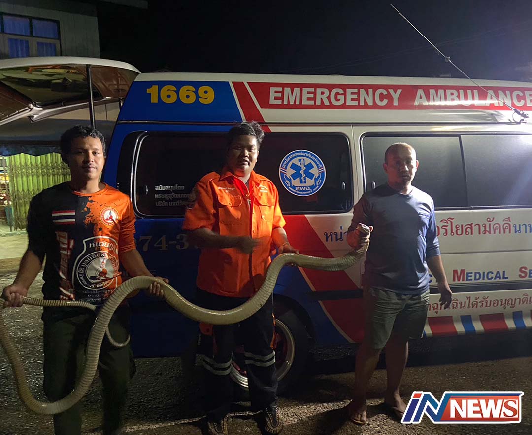 กู้ภัยอริโยฯจับจงอางยาวเกือบ4เมตรซุกใต้ตู้เสื้อ