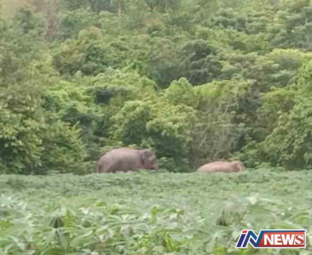 ผวาละมุดช้างป่าทับลานพาพวกมาเยือน