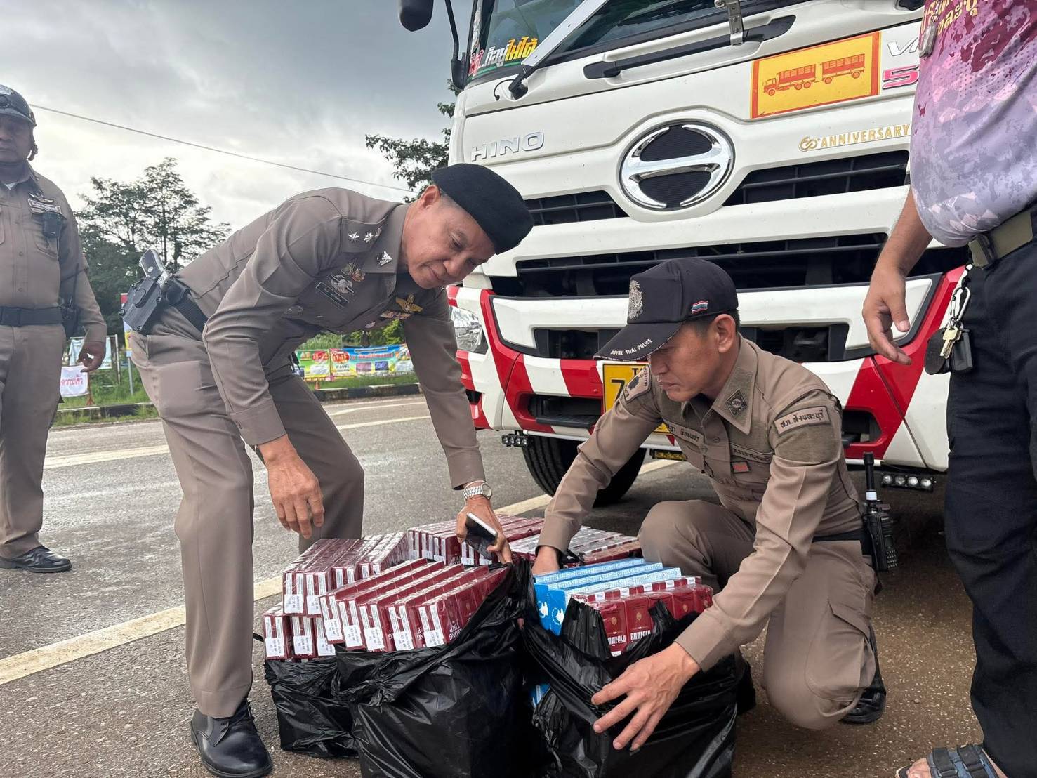 ตร.สังขละจับรถพ่วงลักลอบขนบุหรี่เถื่อน กลางด่านสังขละบุรีค่าปรับอ่วม2ล้านบาท