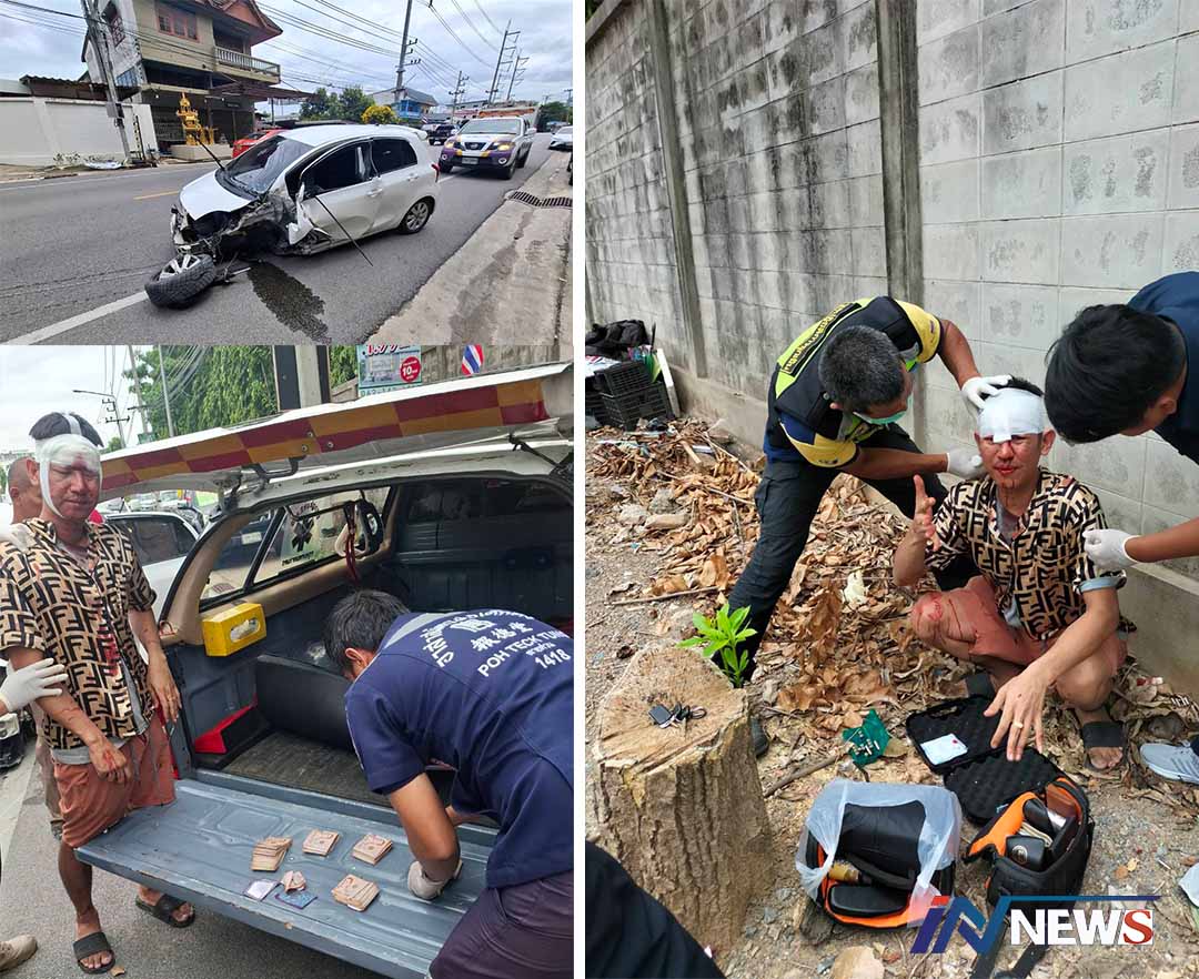 ซวย!ตร.-กู้ภัยช่วยเก๋งชนเสาไฟฟ้าผงะ! 'ลูกปืน-ยาบ้า-เงิน'รักษาหายนอนคุกต่อ