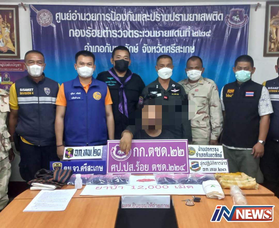 ศรีสะเกษ-ตชด.ปกครอง ทหารพราน ตม.จับหนุ่มวัย 25 ปีขายยาบ้า 12,000 เม็ด ขณะที่นายอำเภอกันทรลักษ์ ไปตรวจสอบสั่งขยายผล...