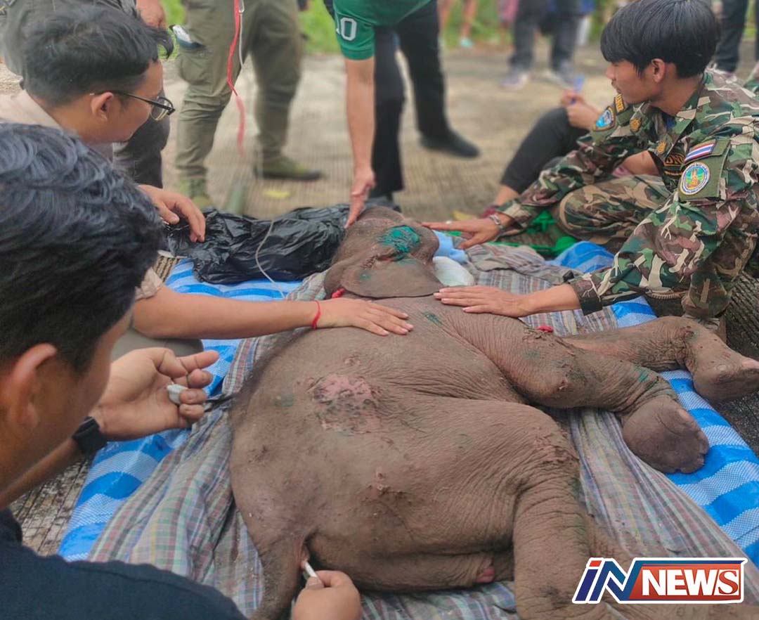 ลุ้นระทึกระดมช่วยลูกช้างป่าเขื่อนศรีนครินทร์บาดเจ็บ