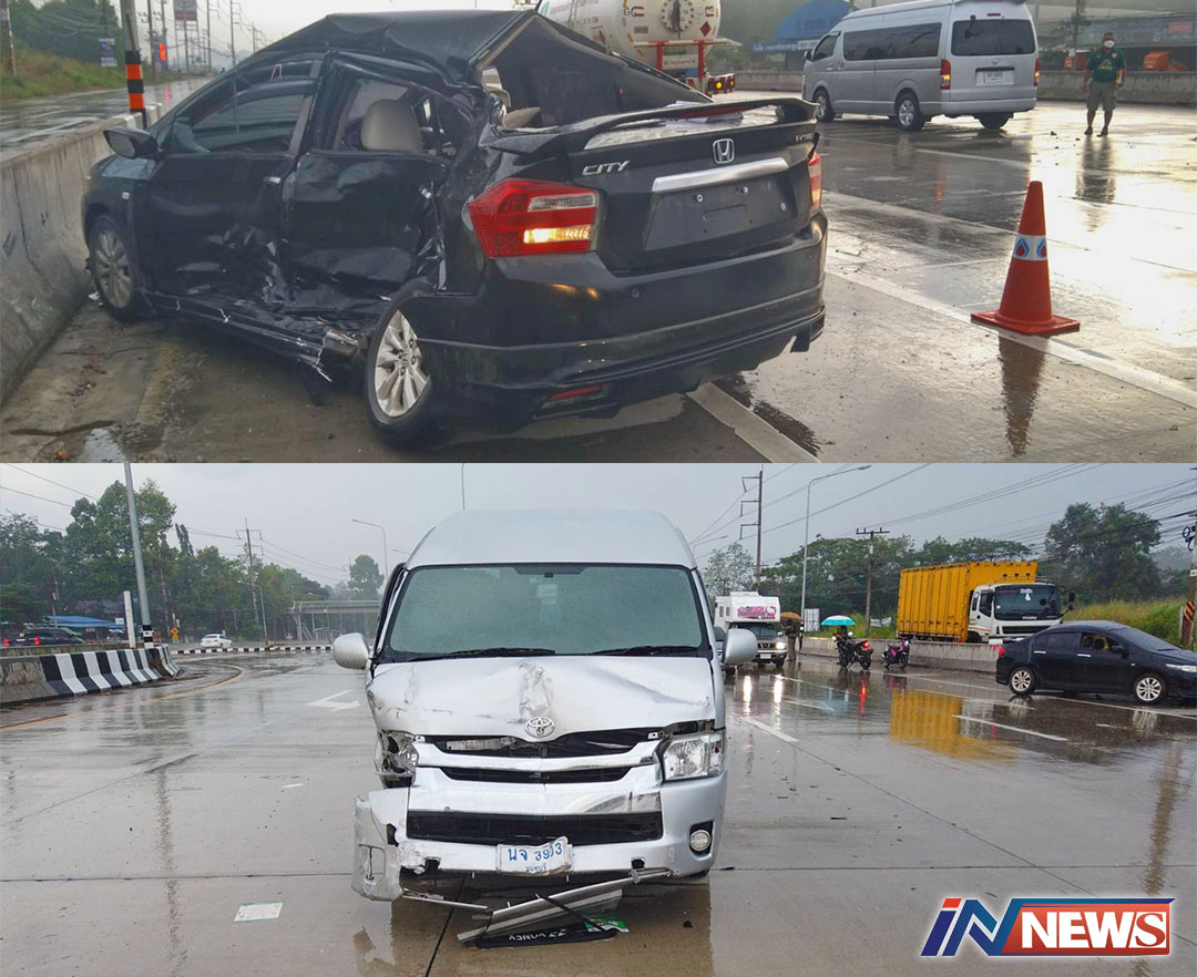 ฉะเชิงเทรา-หวิดเทกระจาดหมู่ สาวขับเก๋งตัดหน้ารถตู้ขนทัวร์ต่างชาติ 7 ชีวิต มุ่งหน้าเที่ยวชายแดนประเทศเพื่อนบ้าน ที่ด่านบ้...