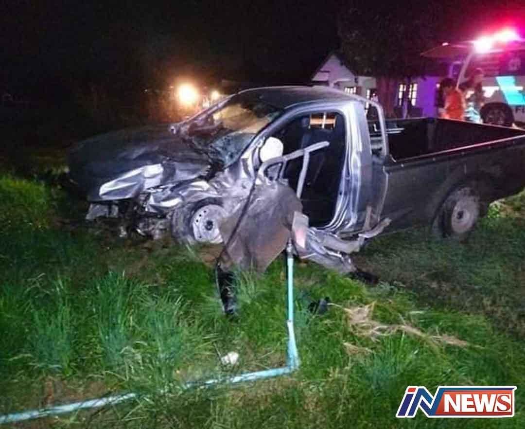 ลูกชายเสี่ยไร่อ้อยควบกระบะฝ่าฝนเสียหลักพลิกคว่ำเสียชีวิต