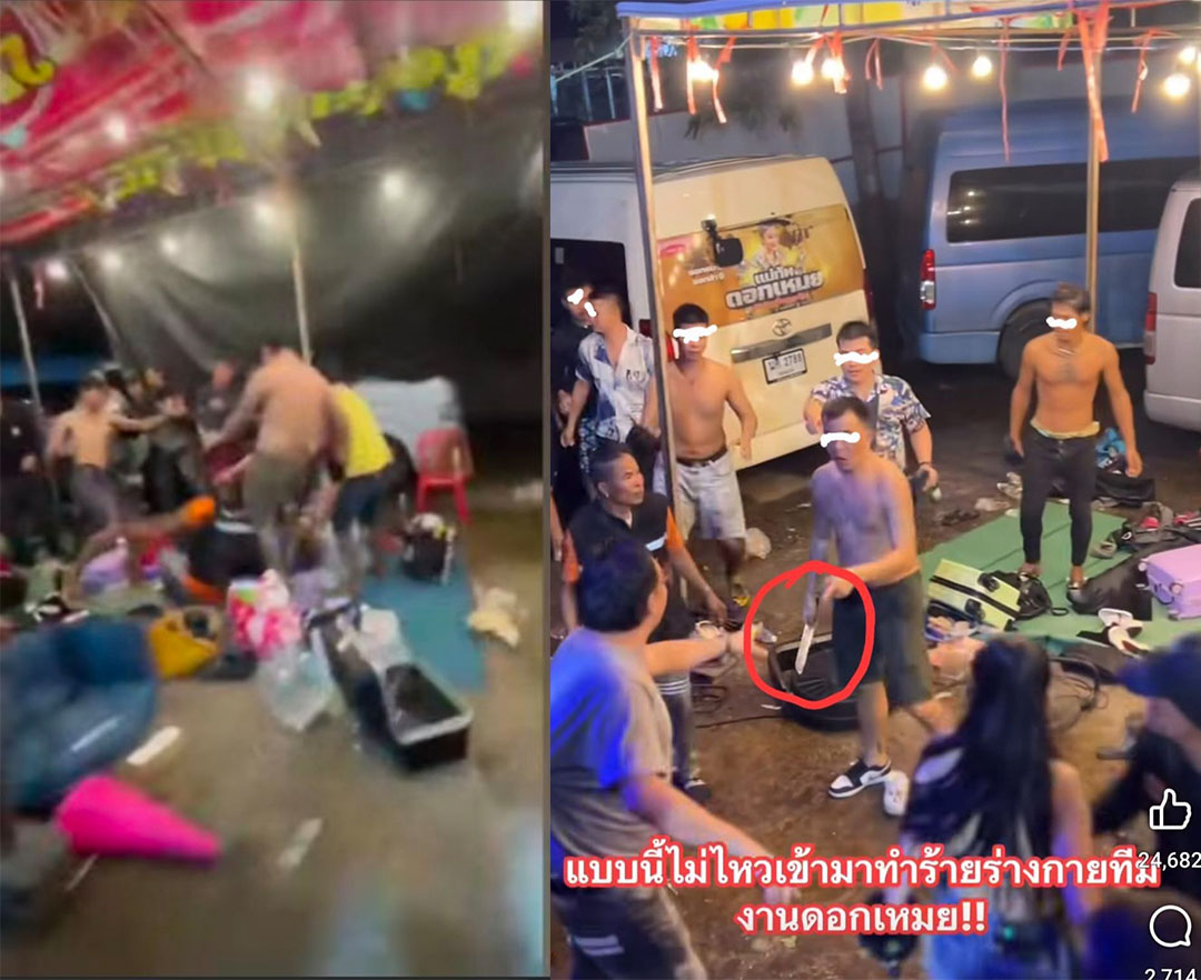 กาฬสินธุ์วัยรุ่นเจ้าถิ่นบุกรุมกระทืบทีมงานหมอลำดอกเหมยกลางงานประเพณีแข่งเรือกาฬสินธุ์