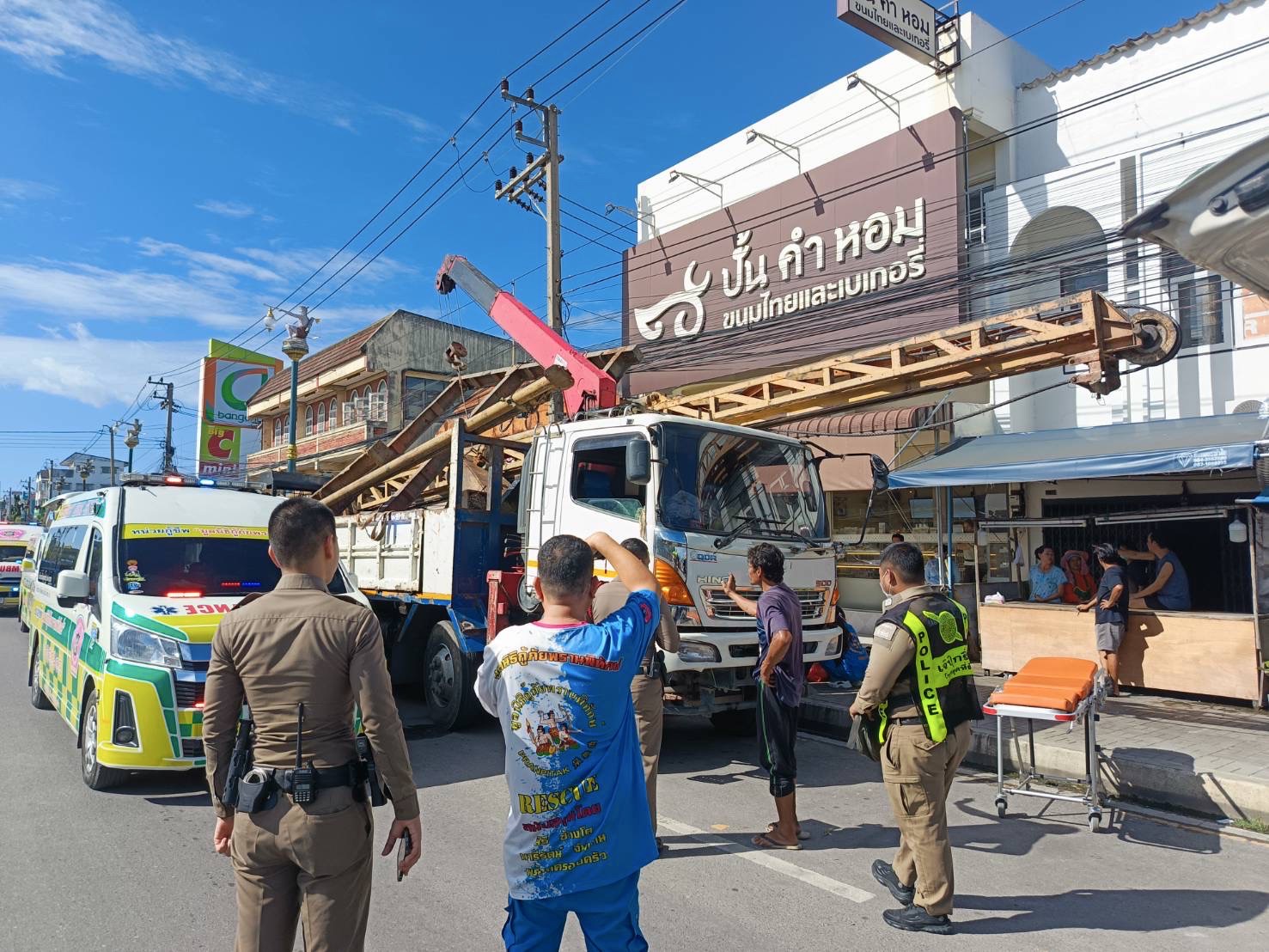 คนงารถสิบล้อซวย!นั่งหลังรถย้ายปั้นจั่น รถตัดหน้าเบรคถูกลูกตุ้มไหลทับดับ