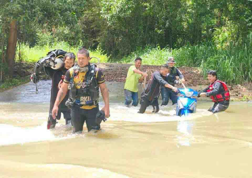 2ผัว-เมียขับรถจยย.ฝ่าสายน้ำฝายน้ำล้น ถูกพัดปลิวจมน้ำเมียบาดเจ็บ
