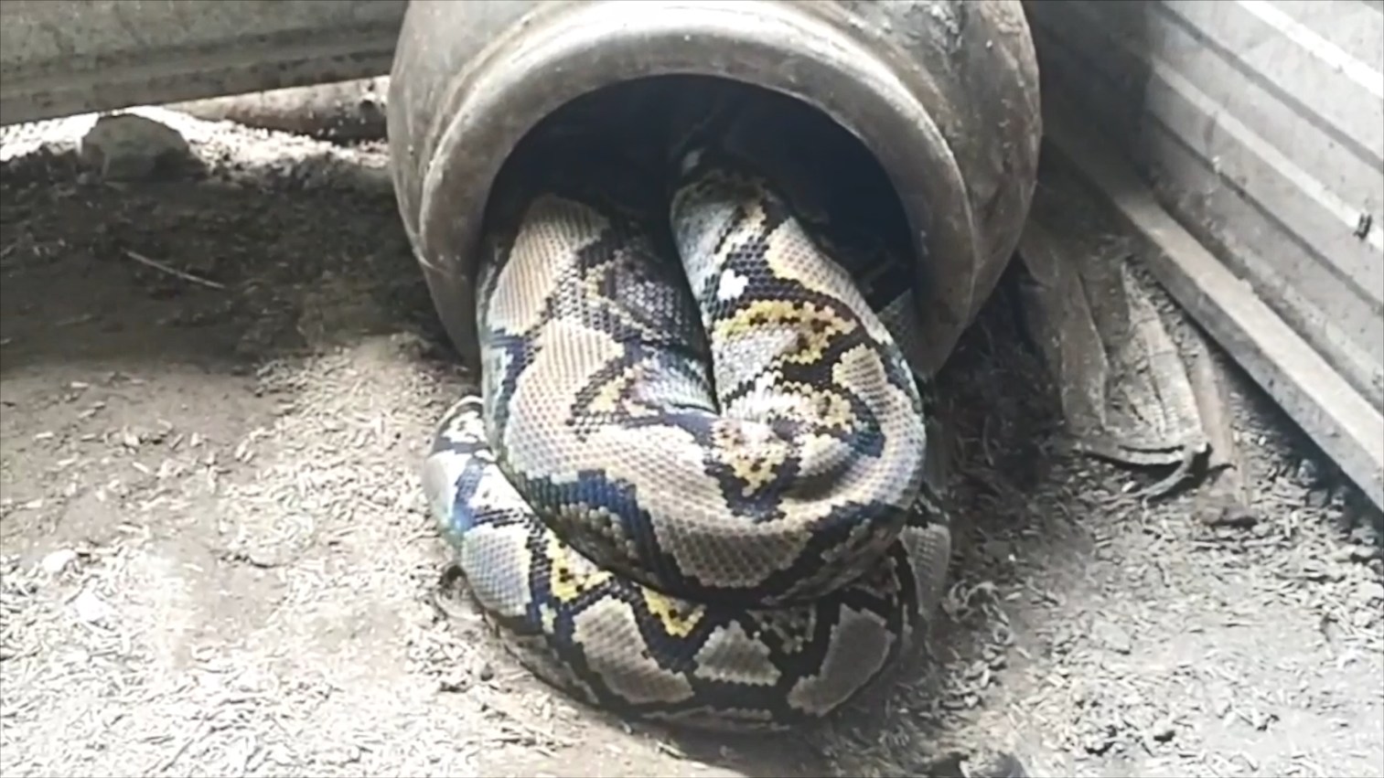 งูเหลือมหิวโซบุกเขมือบไก่ชนถึงเล้าแจ้ง ทีมปราบอสรพิษอาสาพิทักษ์งูมาจับ