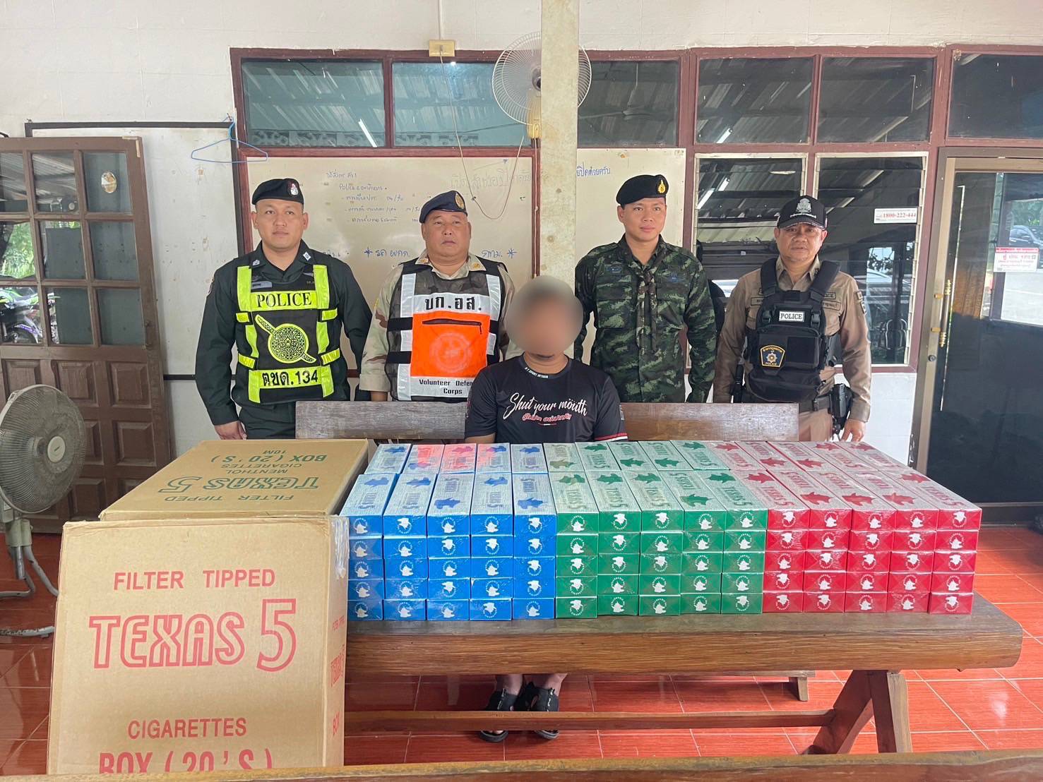 ผู้ว่าฯกาญจนบุรีร่วมฉก.ลาดหญ้าตั้งด่าน รวบหนุ่มขนบุหรี่เถื่อนจากชายแดนพม่า