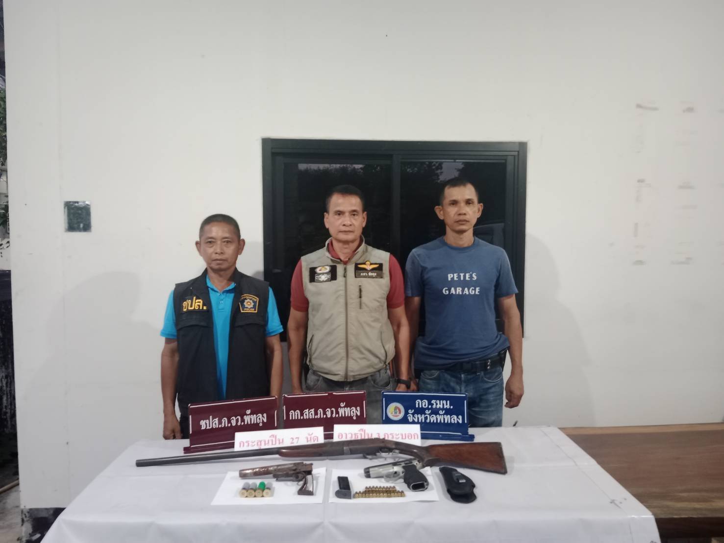พัทลุง-ตำรวจบุกค้นขนำกลางสวน! ยึดปืน 3 กระบอก พร้อมเครื่องกระสุน เตรียมขยายผลติดตามกลุ่มวัยรุ่นลอบมั่วสุม-ค้ายาชอบ...