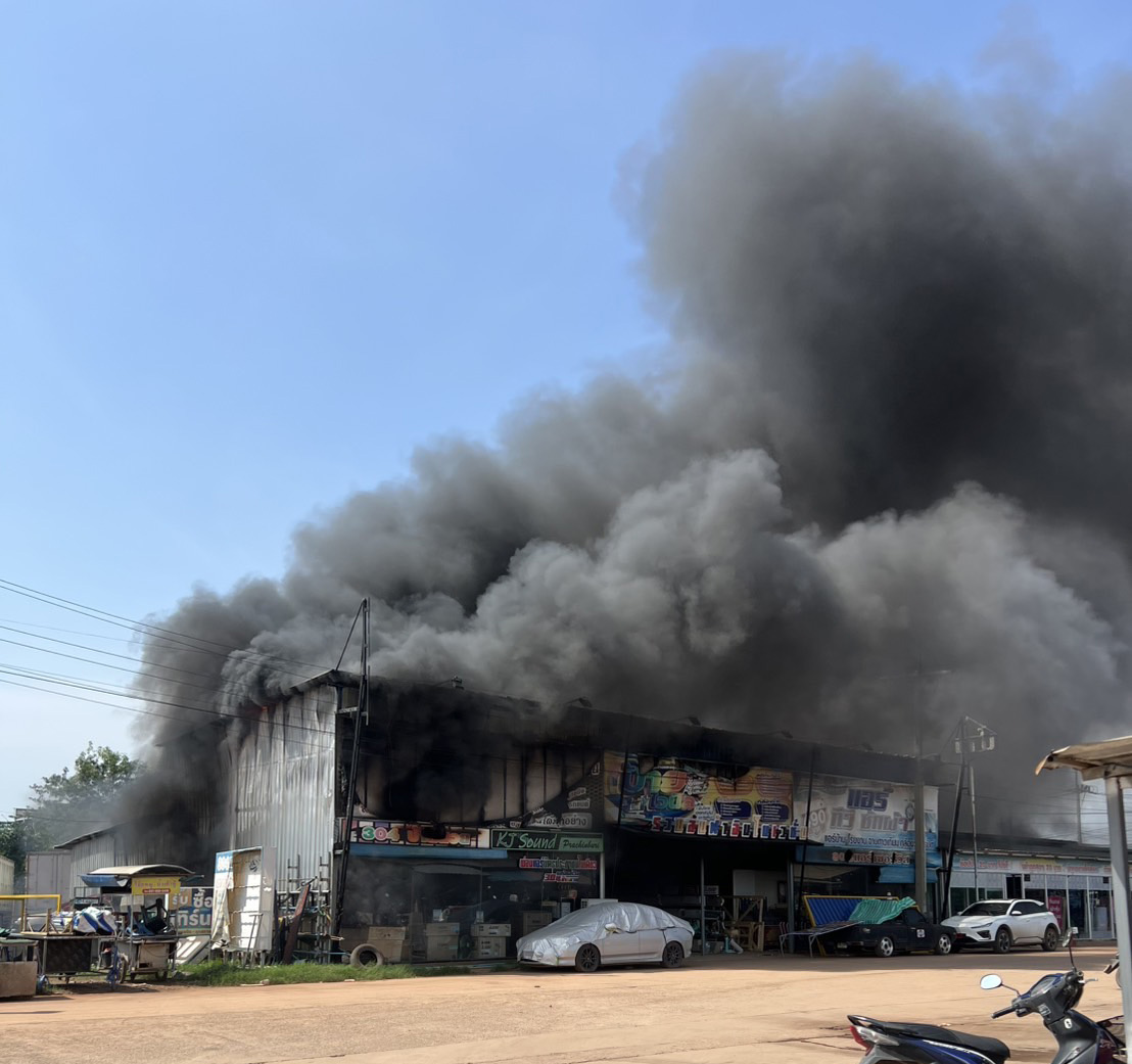 ไฟไหม้ร้านเครื่องเสียงรถยนต์ศรีมหาโพธิ เรถยนต์เก๋งส่ถูกไฟไหม้1คันมูลค่า1ล้าน