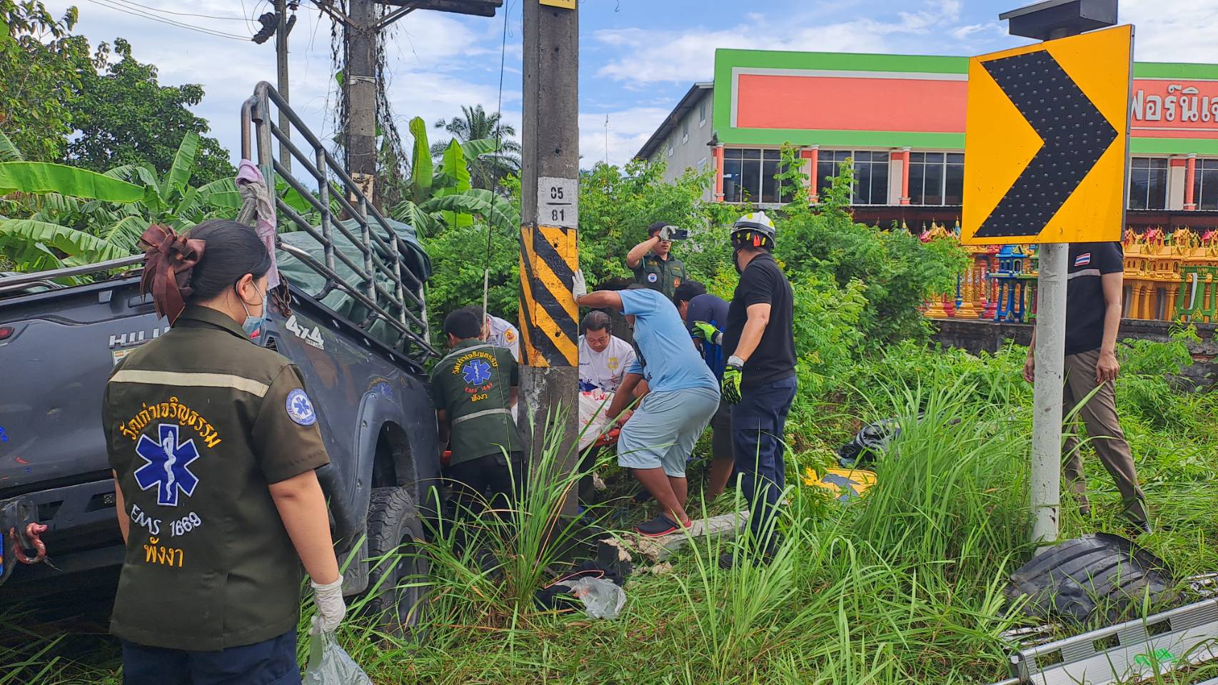 พังงาฝนตกหลื่นคณะนักดนตรีวิ่งหลุดโค้ง ชนเสาไฟฟ้าแรงสูงดับ1เจ็บ2ราย