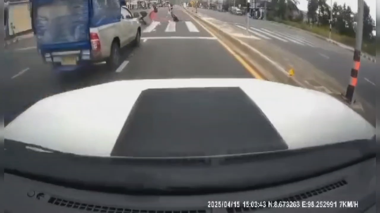 พังงา-ภาพกล้องวงจรปิดหน้ารถจับภาพรถกระบะแท็กซี่ชน3คน พ่อ แม่ ลูกนักท่องเที่ยวกระเด็นขณะเดินข้ามทางม้าลายบาดเจ็บสาหัส