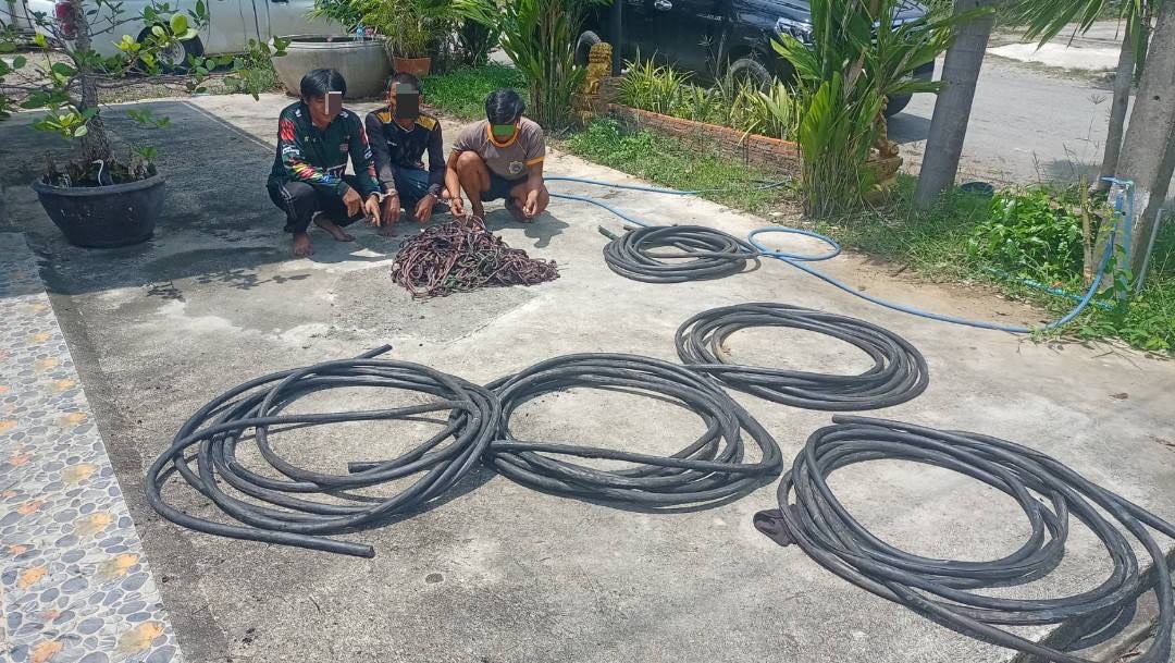 ไม่รอด!หัวขโมยย่องตัดสายไฟกลางคืน จนท.ซุ่มล็อกตัวทันควันหลักฐานคามือ