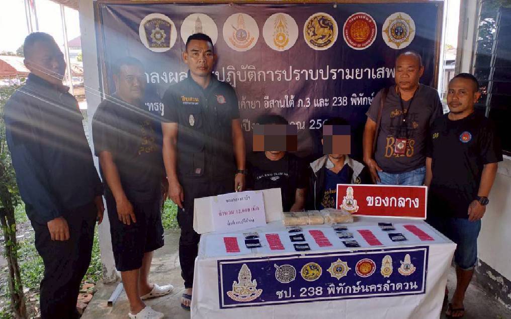 ชุดปฏิบัติการ238พิทักษ์นครลำดวนรวบ 2หนุ่มแยกไฟแดงยึดยาบ้า1.2หมื่นเม็ด
