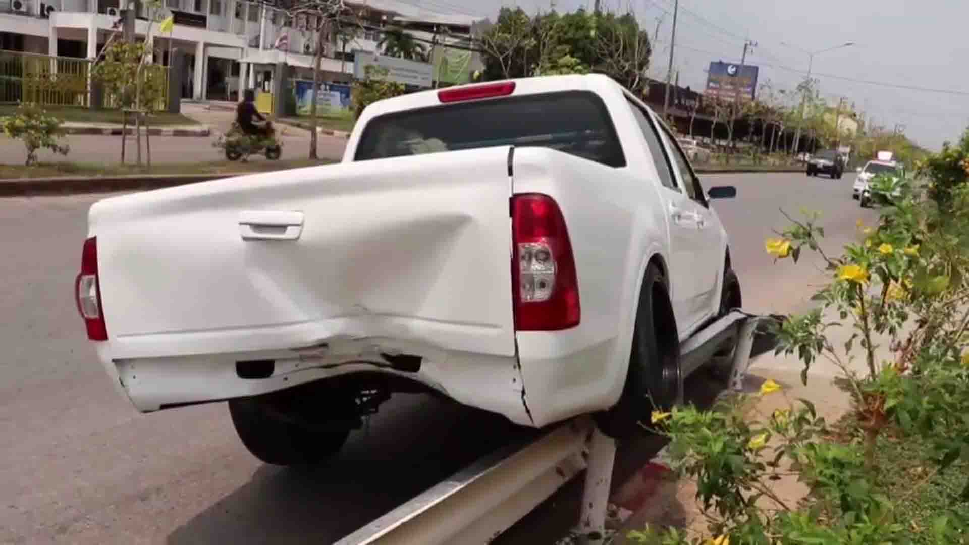 นครราชสีมา-หนุ่มทะเลาะกับแฟนก่อนฉุดขึ้นกระบะเกิดอุบัติเหตุรถปีนกาดเลนส์โชคไม่มีใครบาดเจ็บตำรวจรวบแฟนสอบปากคำดำเนินคดี