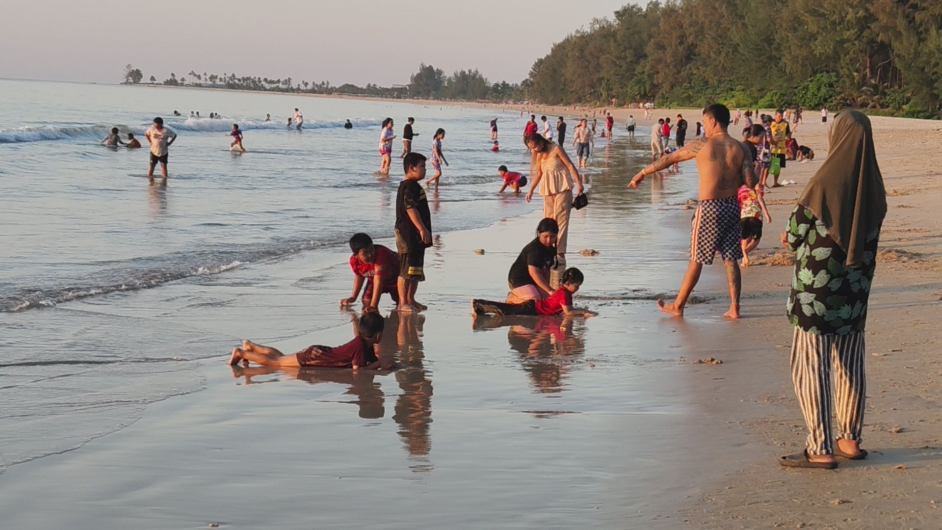 พังงา-นักท่องเที่ยวชาวไทยพาครอบครัวท่องเที่ยวนั่งพักผ่อนและเล่นน้ำทะเลชายหาดบางสัก ด้านนายกสมาคมท่องเที่ยวเผยยอดจองห้องพ...