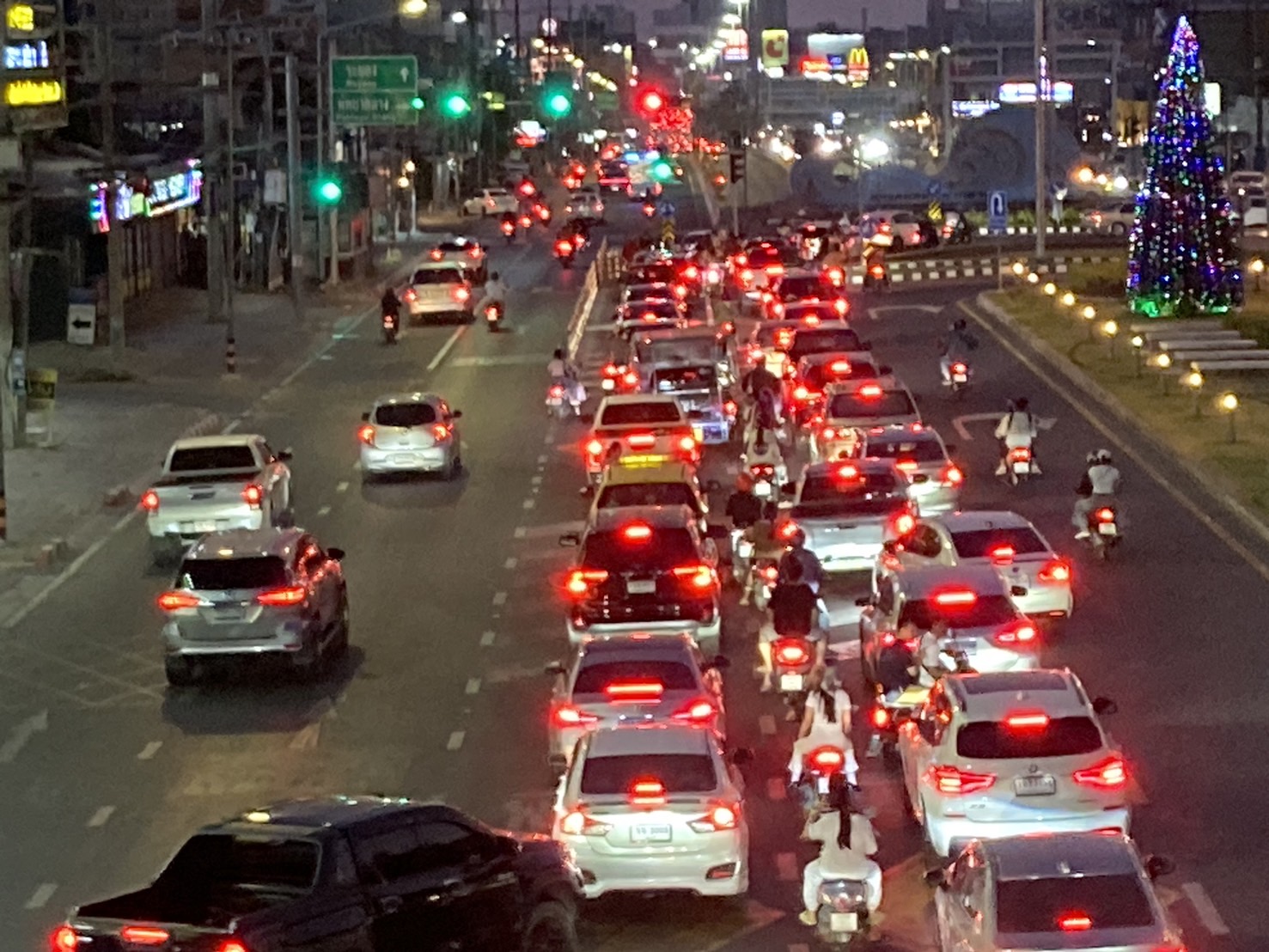 ชลบุรี-บรรยากาศการท่องเที่ยวส่งท้ายปีเก่าเมืองพัทยา การจราจรหนาแน่น