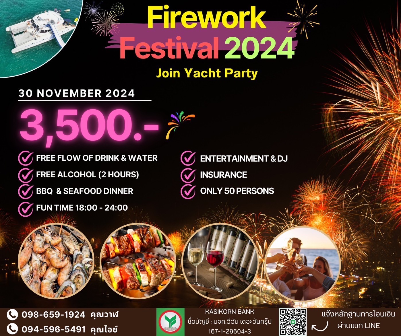 ชลบุรี-ชวนเปิดประสบการณ์ชมพลุไฟ เทศกาล Firework Festival 2024 เหนือเวิ้งอ่าวพัทยา บนเรือยอร์ชหรู พร้อมดินเนอร์สุดเอ๊กซ์ค...