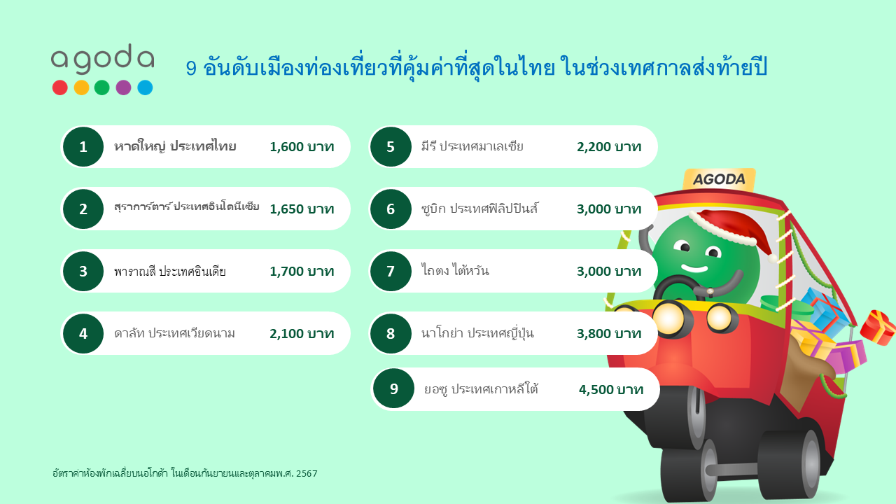 กรุงเทพ,ประเทศไทย,19 พฤศจิกายน 2567 –อโกด้าแพลตฟอร์มดิจิทัลด้านการท่องเที่ยว ประกาศอันดับเมืองท่องเที่ยวที่มีราคาท...