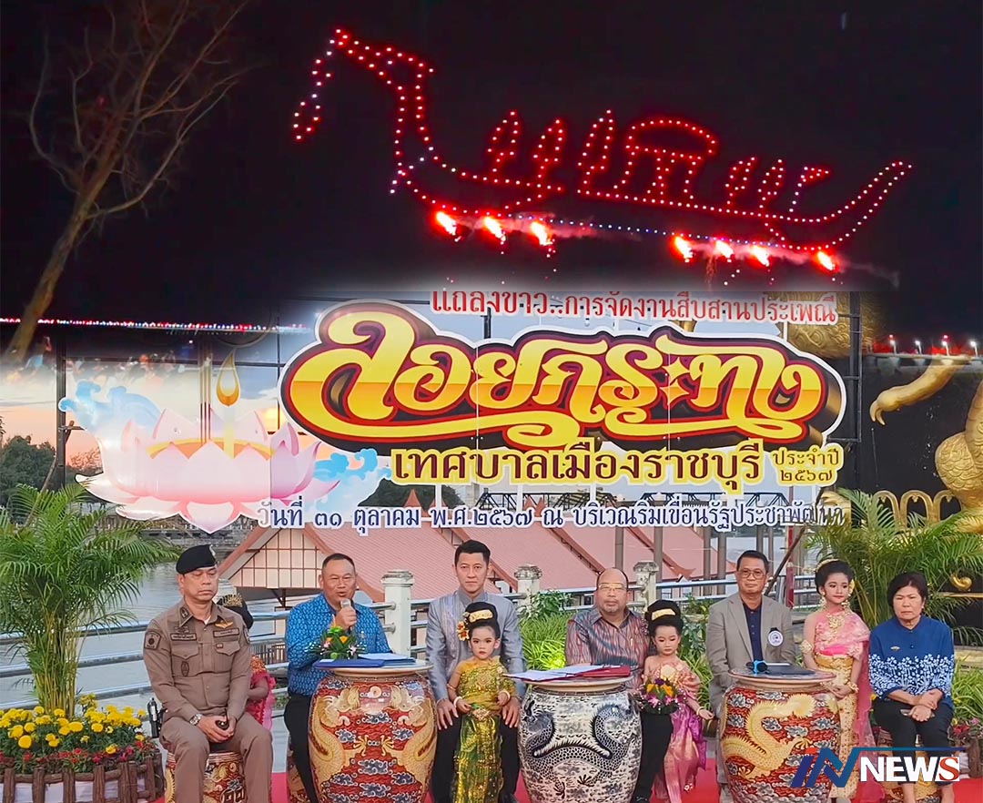 ลอยกระทงราชบุรีไม่ธรรมดาชมการแสดง บินโดรนแปลงอักษรเฉลิมพระเกียรติ