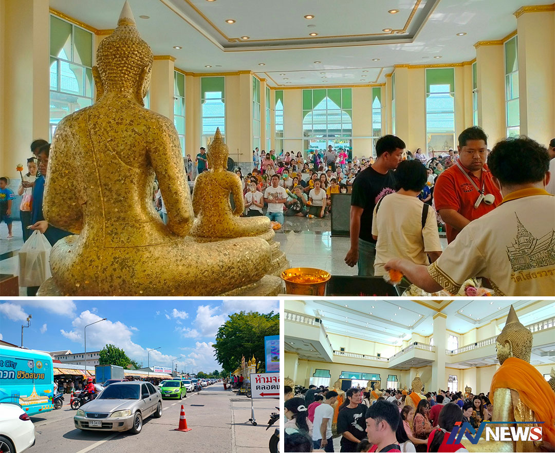ส่งท้ายวันหยุดสายบุญแห่ไหว้หลวงโสธร แน่นวัดส่งผลให้รถติดยาวตลอดทั้งวัน