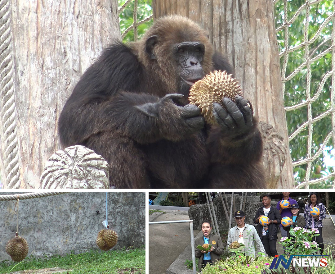 สวนสัตว์สงขลามอบ'ทุเรียน'เป็นรางวัล ลิงชิมแปนซีทายผลถูก'ไทยชนะซีเรีย'