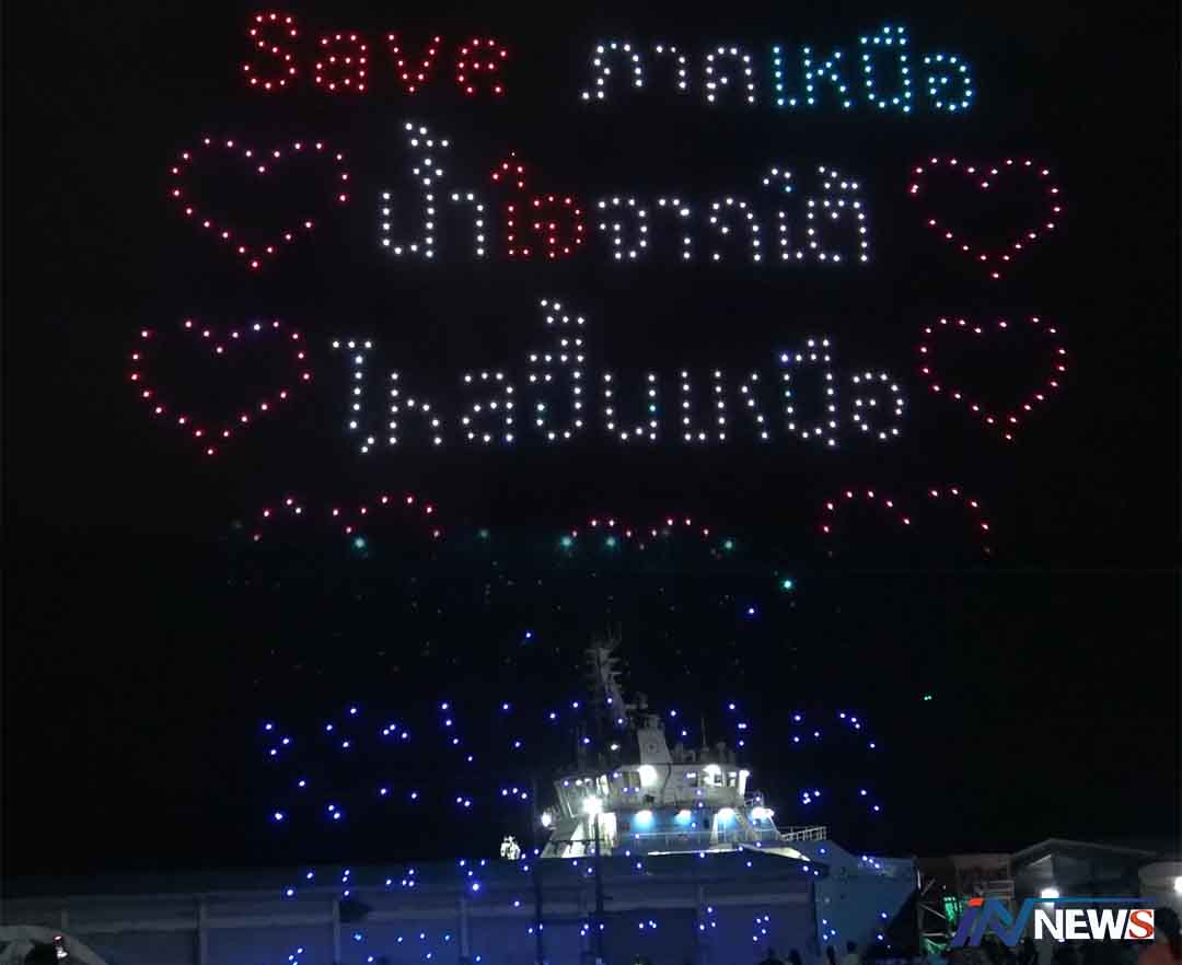 ชาวสงขลาแห่ชมแสดงโดรนแปรอักษร ส่งเสริมการท่องเที่ยวภาคใต้กันคึกคัก