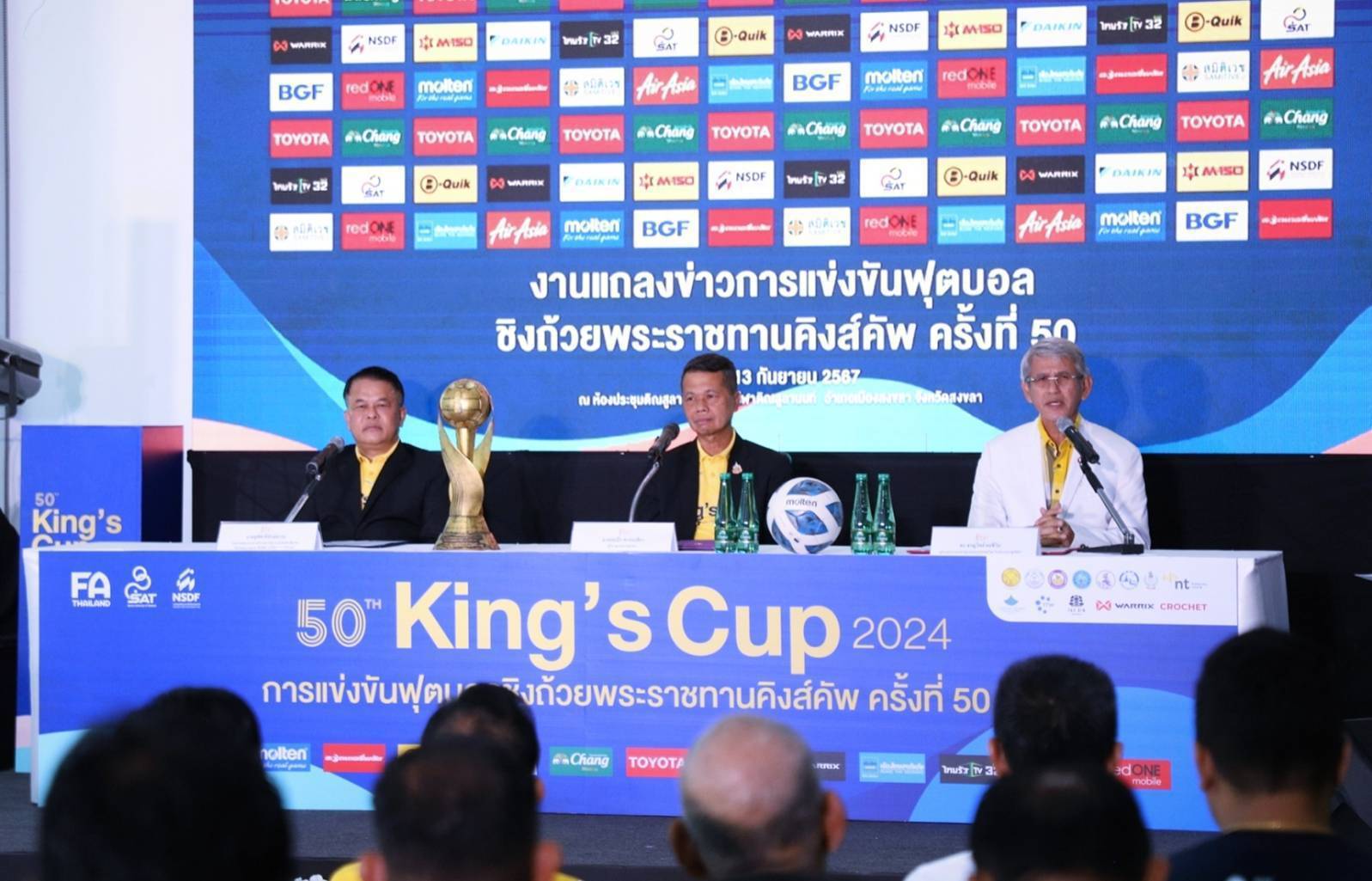 สงขลา-จังหวัดสงขลา จัดแถลงข่าวการแข่งขันฟุตบอลชิงถ้วยพระราชทาน"คิงส์คัพ" ครั้งที่ 50 โดยผู้ร่วมแถลงข่าวป...
