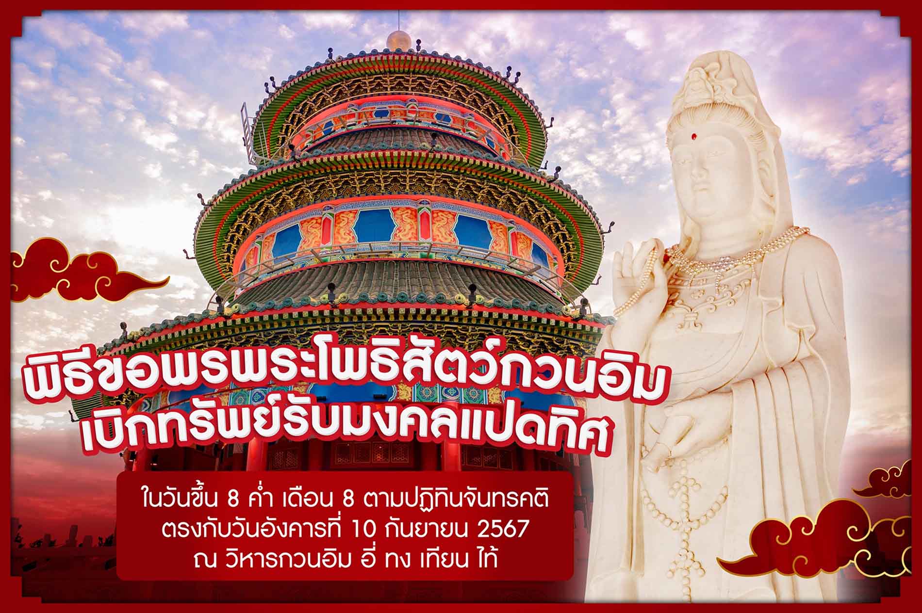 วิหาร'อี่ทงเทียนไท้'ชวนร่วมพิธีขอพร-เบิกทรัพย์พระโพธิสัตว์กวนอิม10ก.ย.นี้