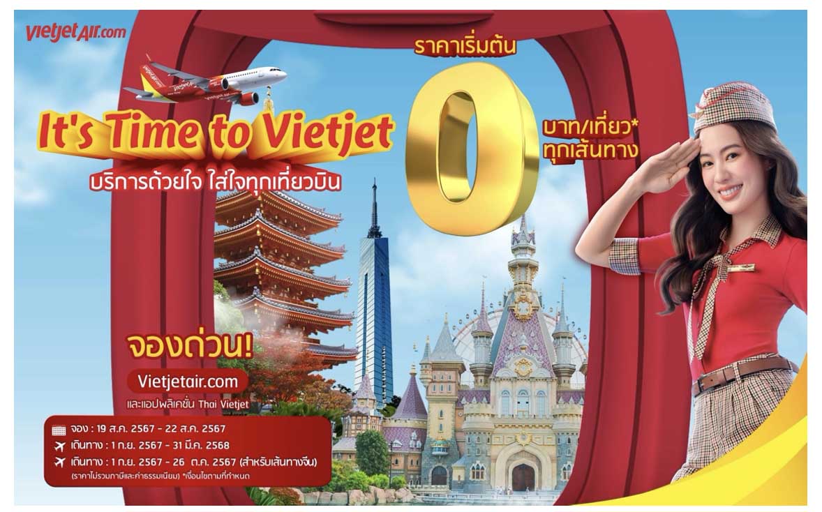 พลาดไม่ได้!เวียตเจ็ทไทยแลนด์จัดโปรฯ สุดคุ้มตั๋วเริ่มต้น0บาท